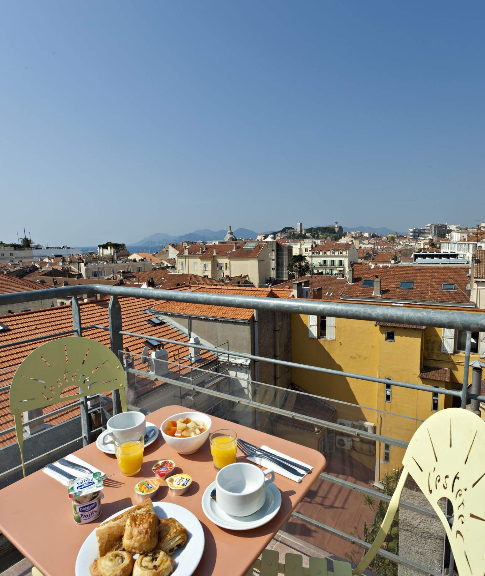 Découvrez notre hôtel 2 étoiles à Cannes, situé au centre-ville avec une magnifique terrasse panoramique offrant une vue sur la ville et sur la mer